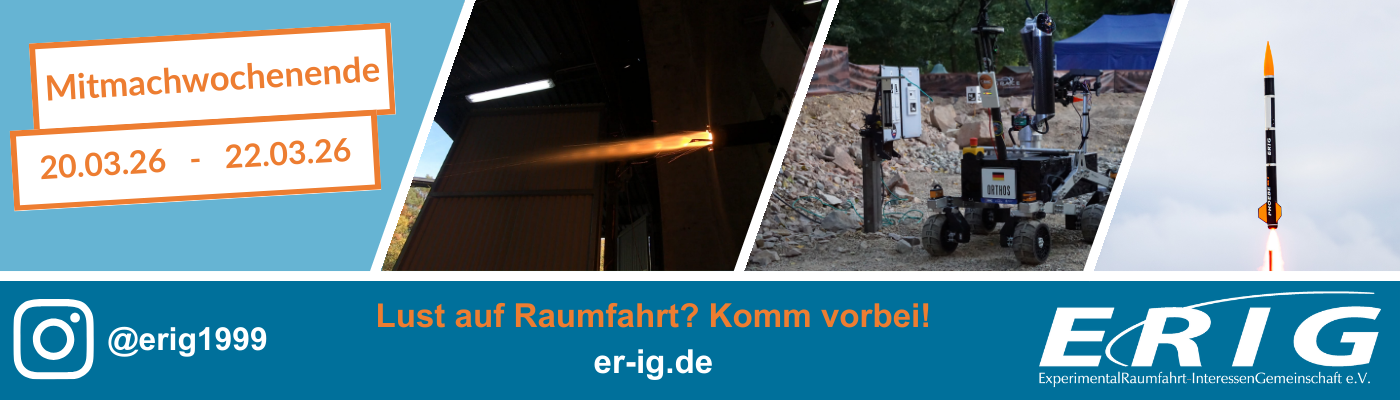 Erneut findet eins unserer beliebten Mitmachwochenenden statt! Jeweils von 10-18 Uhr laden wir dich ein, dir die ERIG ganz unverbindlich anzuschauen und mit uns an unseren spannenden Projekten zu arbeiten. Sei dabei, wenn wir an unserem Mars-Rover-Demonstrator KERBEROS basteln oder unsere Experimentalrakete Phoebe für den nächsten Start vorbereiten. Egal, was du studierst: Bei uns bist du eingeladen, dich mit deinen Fähigkeiten einzubringen, Neues zu lernen und dein Wissen in die Tat umzusetzen. Komm vorbei, wir freuen uns auf dich!